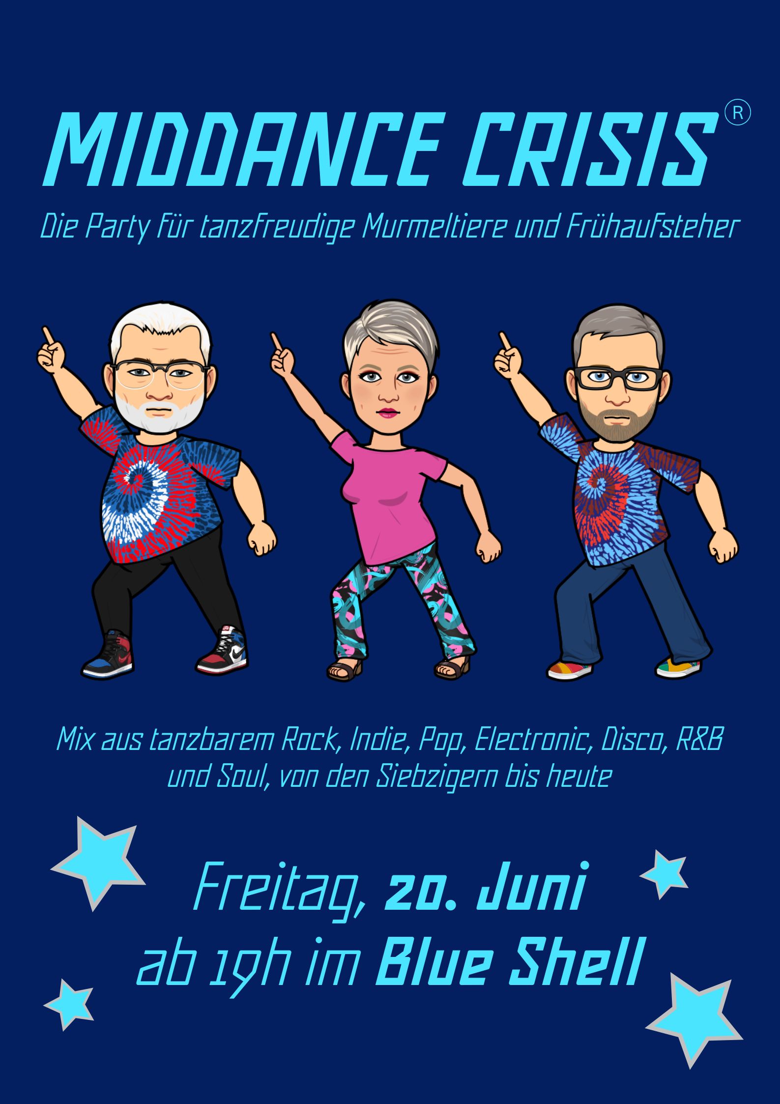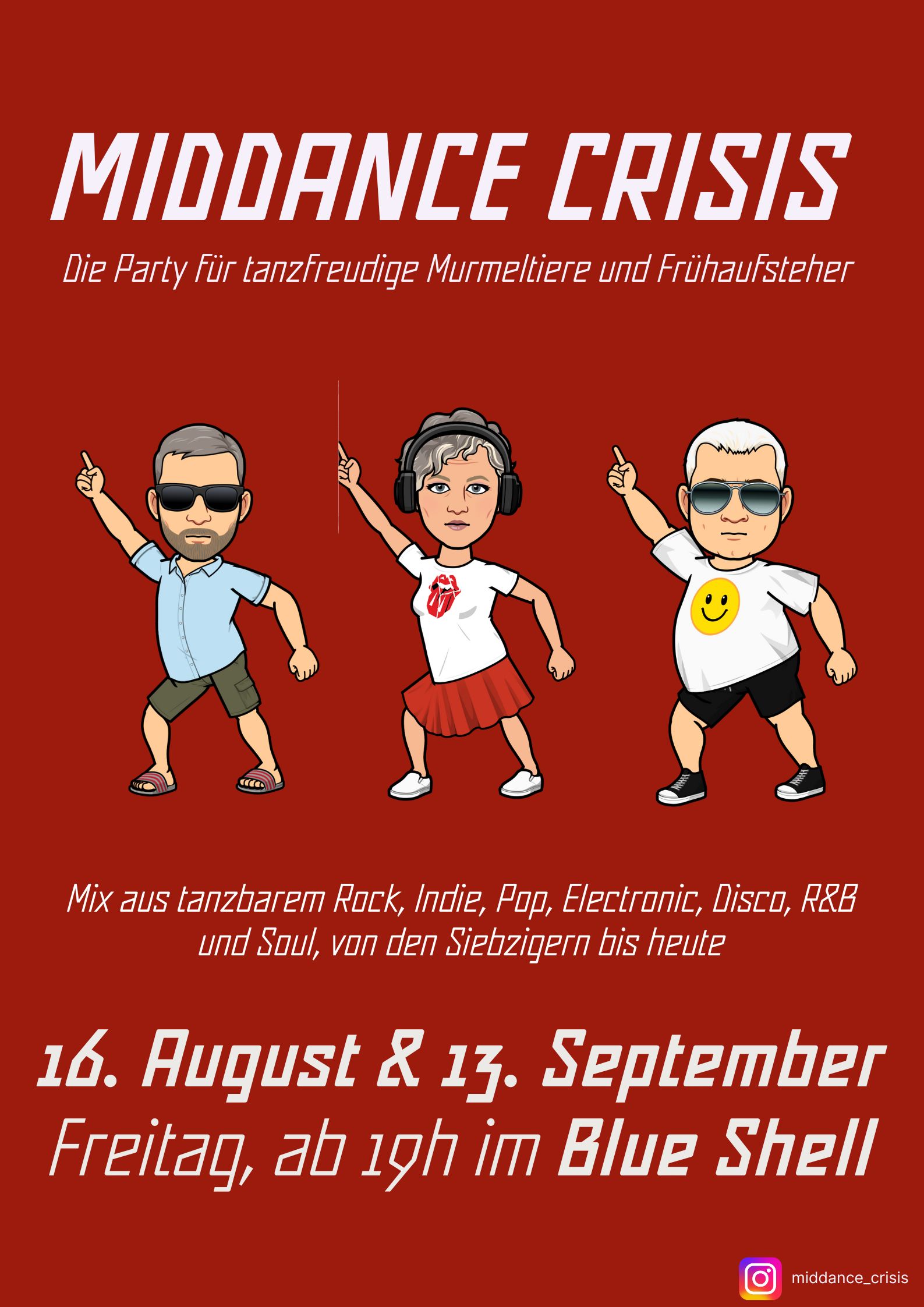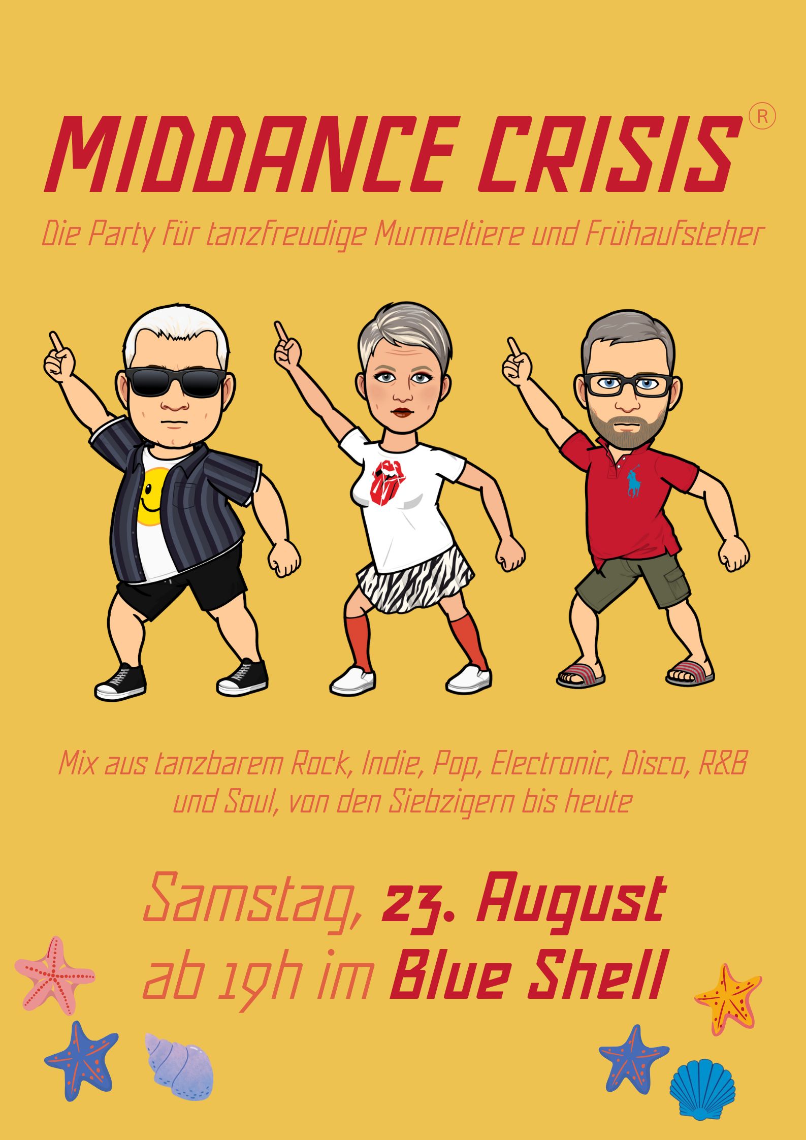 Zeit bis zur nächsten Dance-Party: Samstag, 25.  April 2026 Blue Shell Freitag, 22.  Mai 2026 Blue Shell Freitag, 24.  Juli 2026 Blue Shell Vergangene/entgangene Party-Termine Partyfotos Partyfotos Partyfotos