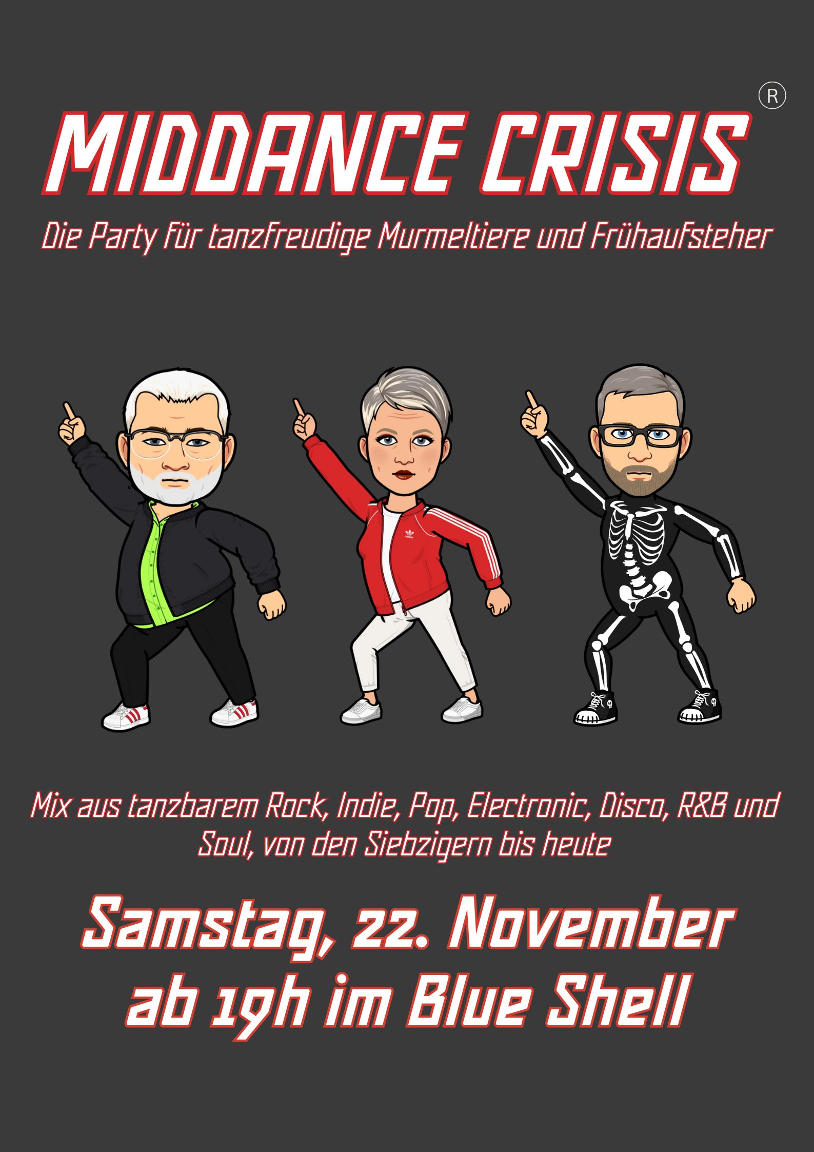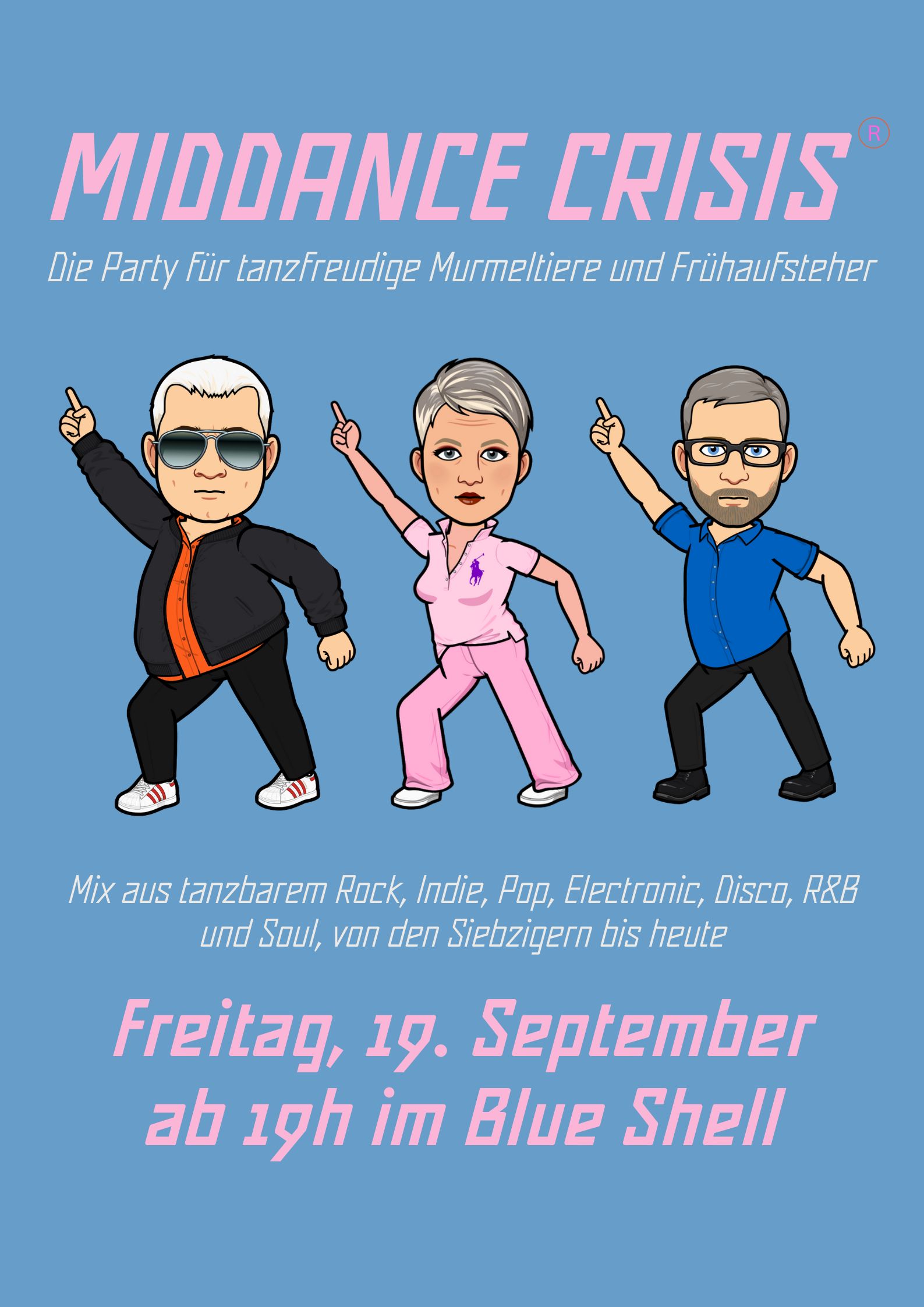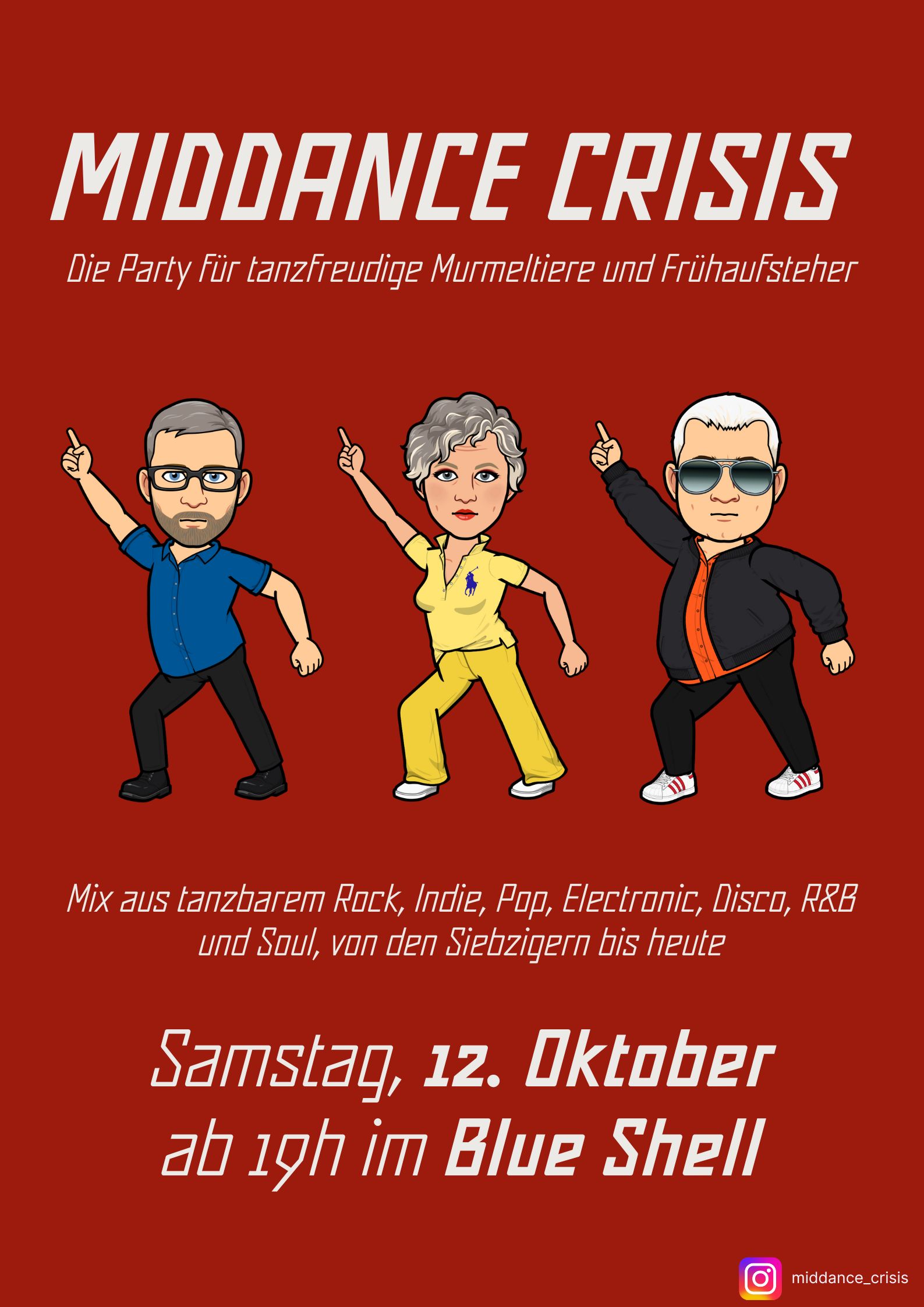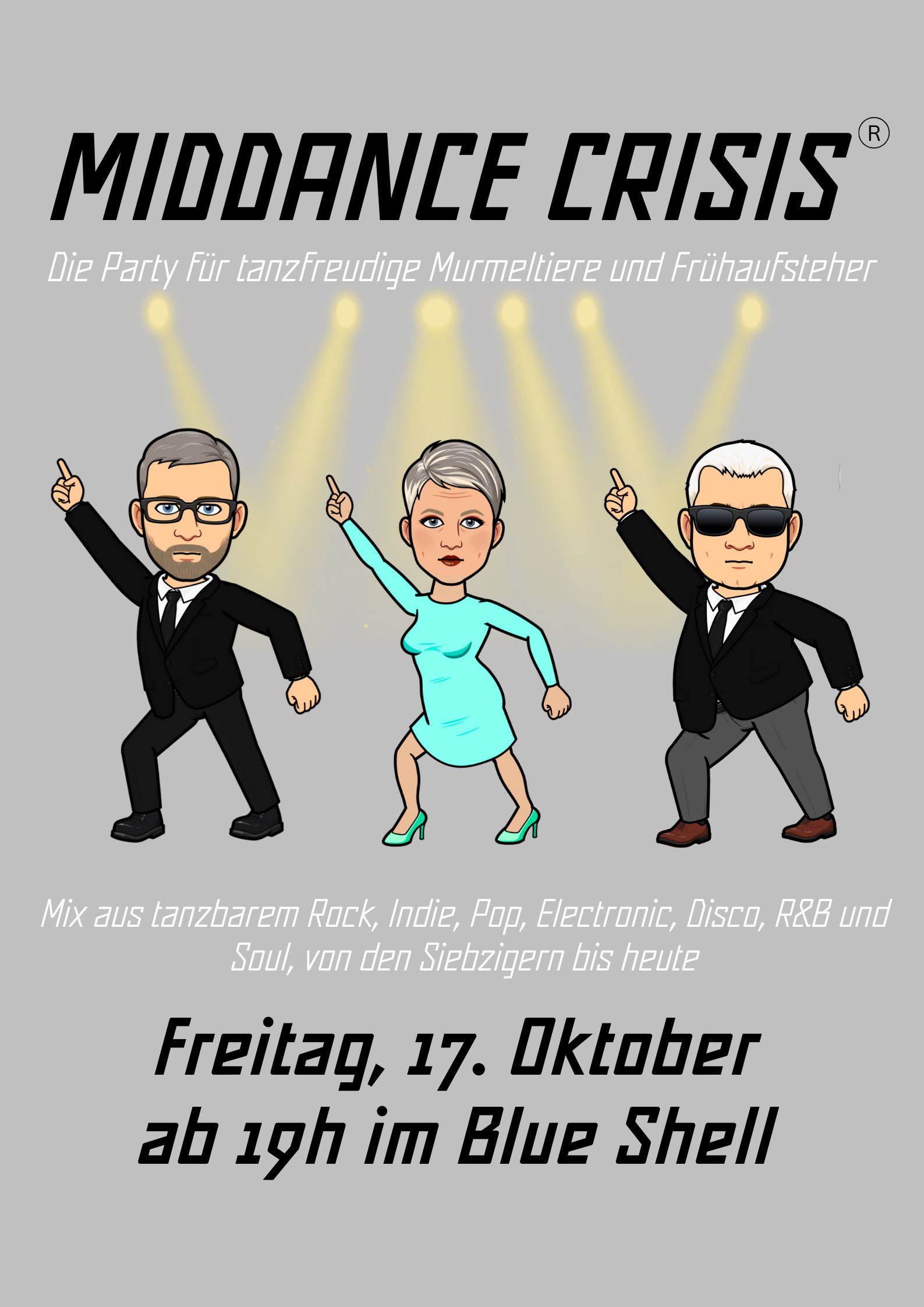 Zeit bis zur nächsten Dance-Party: Samstag, 25.  April 2026 Blue Shell Freitag, 22.  Mai 2026 Blue Shell Freitag, 24.  Juli 2026 Blue Shell Vergangene/entgangene Party-Termine Partyfotos Partyfotos Partyfotos